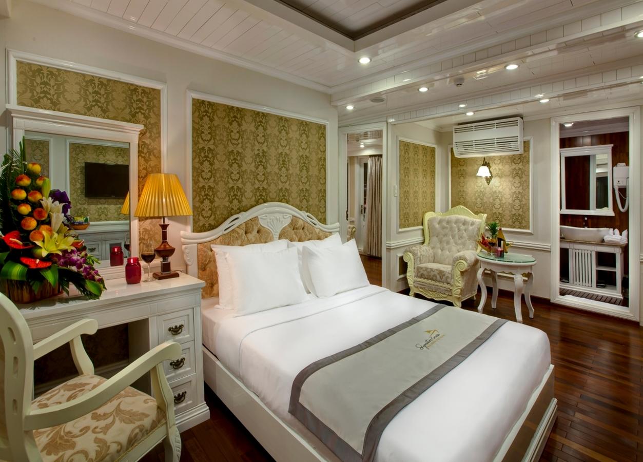 - Tàu thăm quan và nghỉ đêm trên vịnh sang trọng và tiện nghi, nghỉ 02 khách người lớn/cabin. Trường hợp quý khách nghỉ 1 mình 1 phòng sé áp dụng phụ thu phòng đơn.