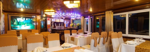 19h00: Quý khách dùng bữa tối trên du thuyền, thưởng thức không gian lãng mạn trên biển hoặc tham gia các hoạt động vui chơi giải trí trên du thuyền như: Bi lắc, câu mực đêm, hát karaoke,…Nghỉ đêm trên du thuyền Golden Star.